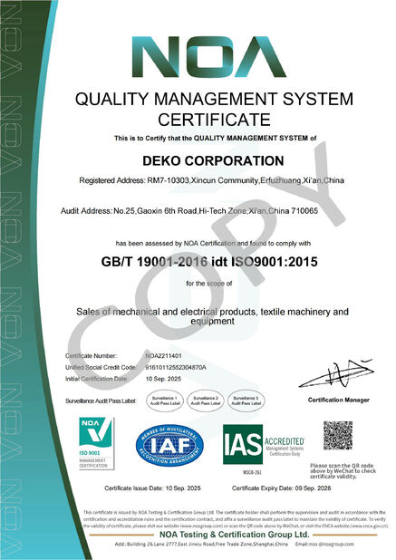 Kami melakukan jaminan kualitas di bawah sistem kualitas bersertifikat ISO9001.